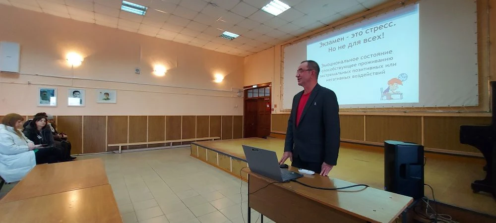 А.П. Бадак - председатель ПМПК - в своем выступлении особое внимание уделил вопросам напряжения и тревожности, созданию психологического комфорта для выпускников во время подготовки к ГИА.